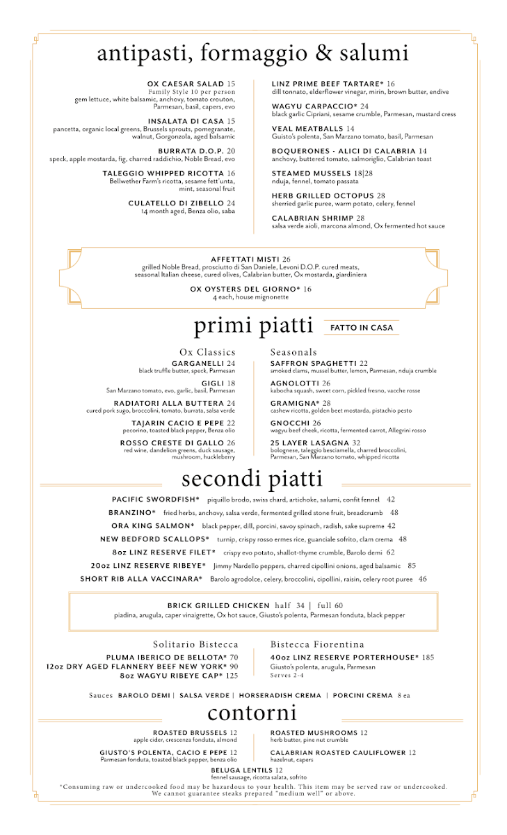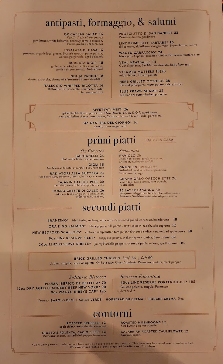 Introducing Fat Ox, an exquisite Italian dining experience located at 6316 N Scottsdale Rd, Scottsdale, AZ. This vibrant restaurant boasts a menu that celebrates authentic flavors with a modern twist, featuring handmade pastas and expertly crafted dishes. Signature offerings like the Garganelli with black truffle butter or the indulgent 25 Layer Lasagna showcase the kitchen's commitment to quality and flavor.
